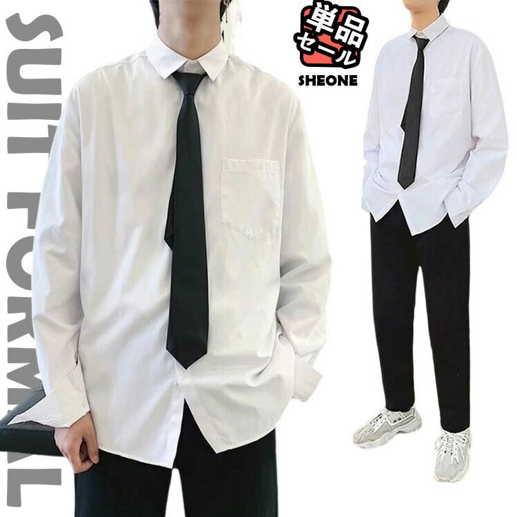 卒業式 ブラウス メンズ ダンス 衣装 韓国 トップス - 白 シャツ ネクタイ 白 長袖 黒 韓国 ダンス衣装 ネクタイおまけ おしゃれ ゆめかわいい 個性的 ヒップホップ かっ