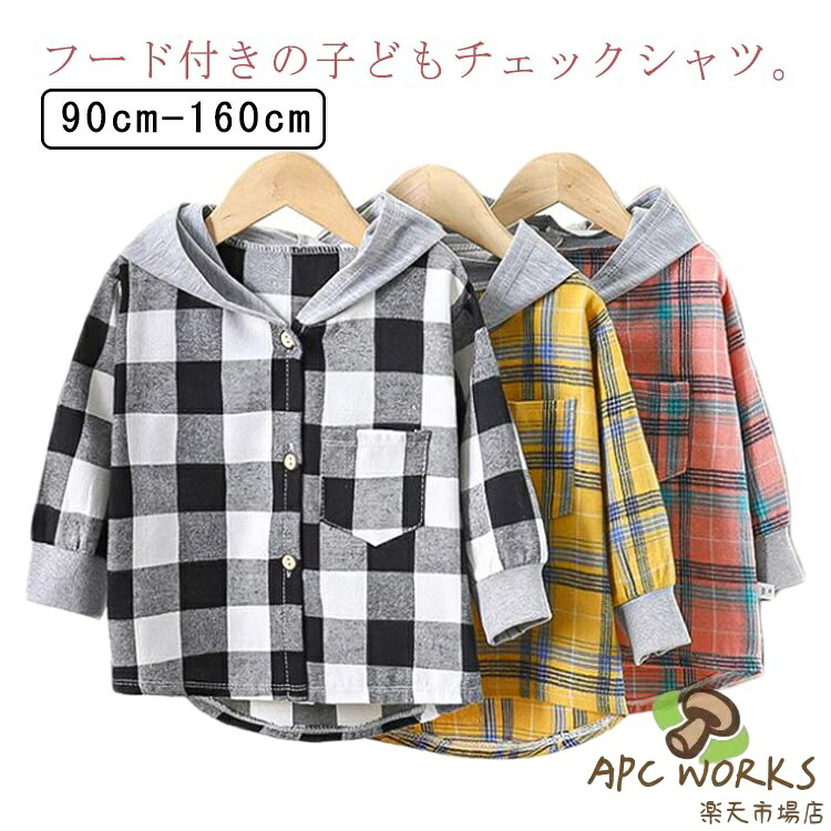 フード付 チェック シャツ 長袖 子供服 キッズ ベビー
