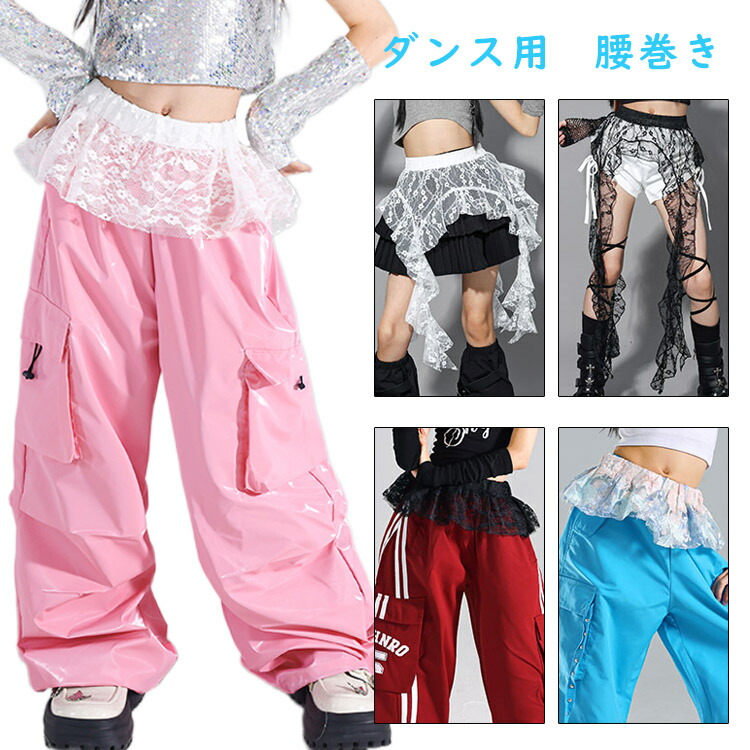 ダンス 腰巻き キッズ 腰巻風 アクセサリー 子供用 女の子 レース 白 黒 フリーサイズ ダンス用 ジャズダンス 韓国 k-pop 衣装 ヒップホップ かっこいい 子供 団体 応援団 小学生 小物