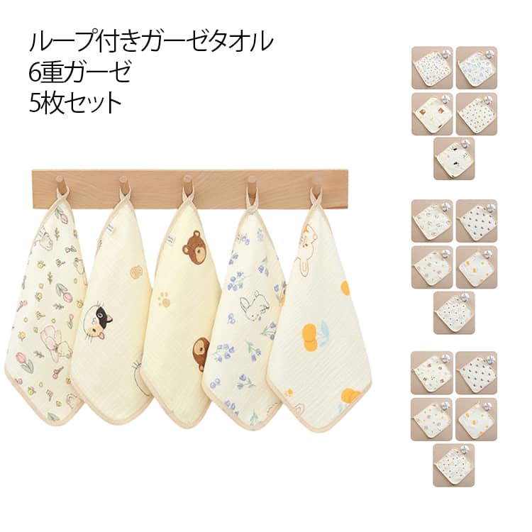 ループ付きタオル ふわふわ ループ付き ハンドタオル 動物柄 綿 きタオル キッズ 5枚組 女の子 ハンカチ 可愛い 手拭き タオル 吊り下げ ループタオル 幼稚園 北欧 男 保育園