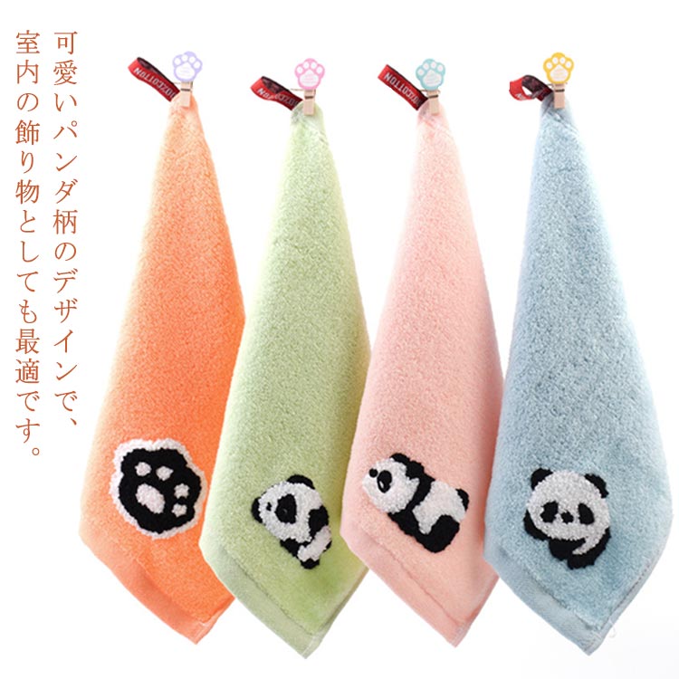 パンダ ループタオル 4色 4点セット 子供 厚手 かわいい タオル 動物柄 ループ付き タオル 保育園 幼稚園 入園入学準備 ふわふわ コットン ぶら下げ タオル