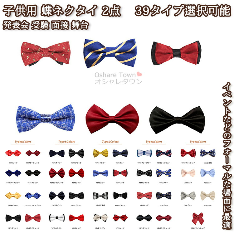 蝶タイ 2点 蝶ネクタイ 蝶 ネクタイ ボウタイ リボン スーツ用 正装用 フォーマル キッズ こども 子供 男の子 女の子 ジュニア パーティ 発表会 結婚式 団体 制服 面接 舞台 入学式 受験