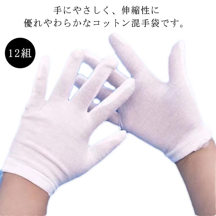 コットン混 かきむしり キッズ 12組 白手袋 手袋 作業手袋 子供 乾燥対策 掻きむしり 手荒れ 通気性 吸湿性 防止 品質管理 おやすみ手袋 綿混 スムス手袋