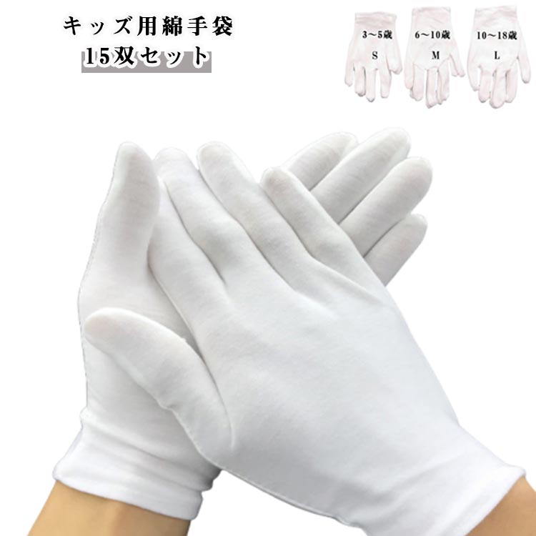 子供 コットン手袋 15双セット キッズ 白手袋 綿手袋 かきむしり対策 防止 手袋 綿 保湿手袋 手荒れ 爪噛み対策 幼児 小学生 S M L 就寝用 乾燥対策 ナイトグローブ 女性