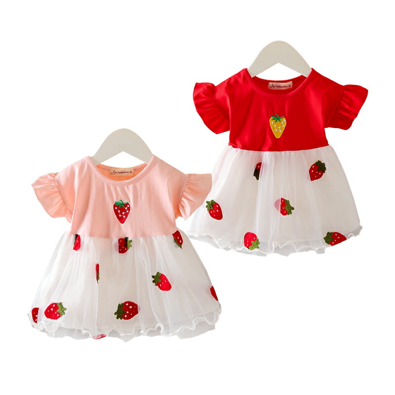 子供服 ワンピース 女の子 ガールズ カジュアル 子供ドレス ベビー服 プリンセス いちご チュールスカート おしゃれかわいい 春夏 韓風
