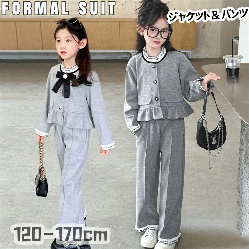 女の子 ワンピース ブラウス セットアップ 入園式 キッズ スーツ Tシャツ 子供服 フォーマル 子ども服 ドレス ガールズ フォーマルスーツ グレー 女の子スーツ 卒園式 卒業式 結 韓国風
