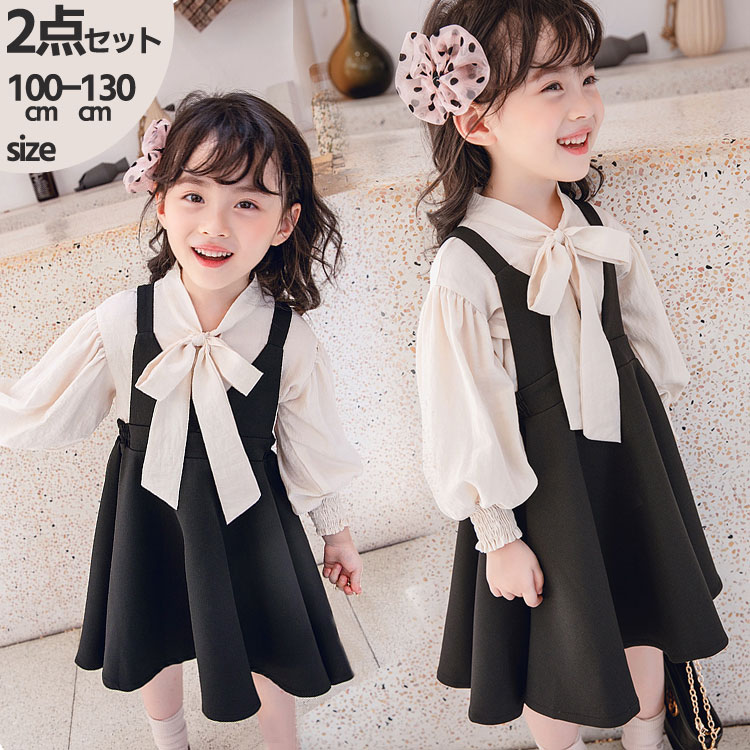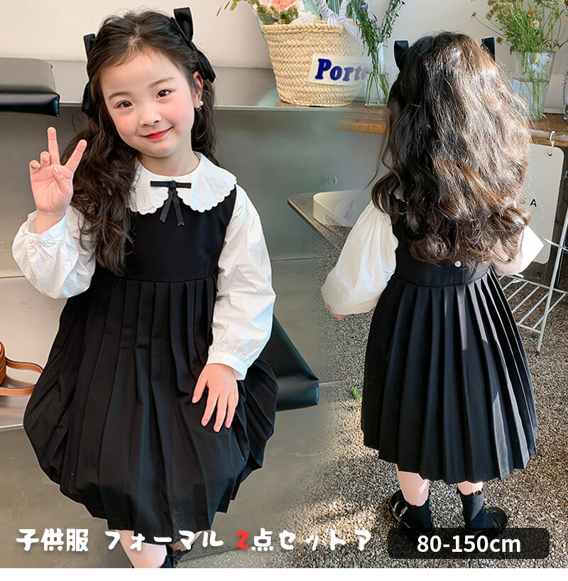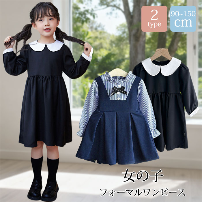 送料無料!2点セット ワンピース シャツ ドレス 女の子 学生 ライン 黒 長袖 子供 衣装 入学式 フォーマル 女児 七五三 入園式 卒業式 結婚式 きれいめ 可愛い 人気 カジュアル