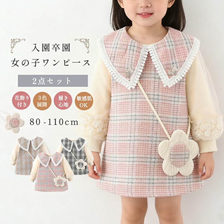 ワンピース きれいめ 子ども 長袖 七五三 ワンピース 子供服 保育園 服 子供 秋 冬 フォーマル ピアノ発表会 ベビー チェック柄 結婚式 誕生日 1歳 2歳 3歳 4歳