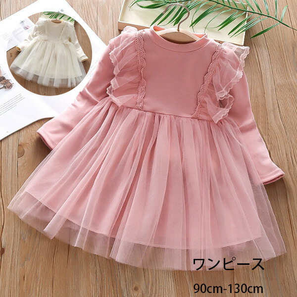 子ども服 女の子 ワンピース おしゃれ 長袖 ワンピース キッズ ベビー服 チュール ワンピース 春着 秋着 姉妹 プレゼント 結婚式 誕生日 撮影写真 お出かけ 通園 通学 90-130