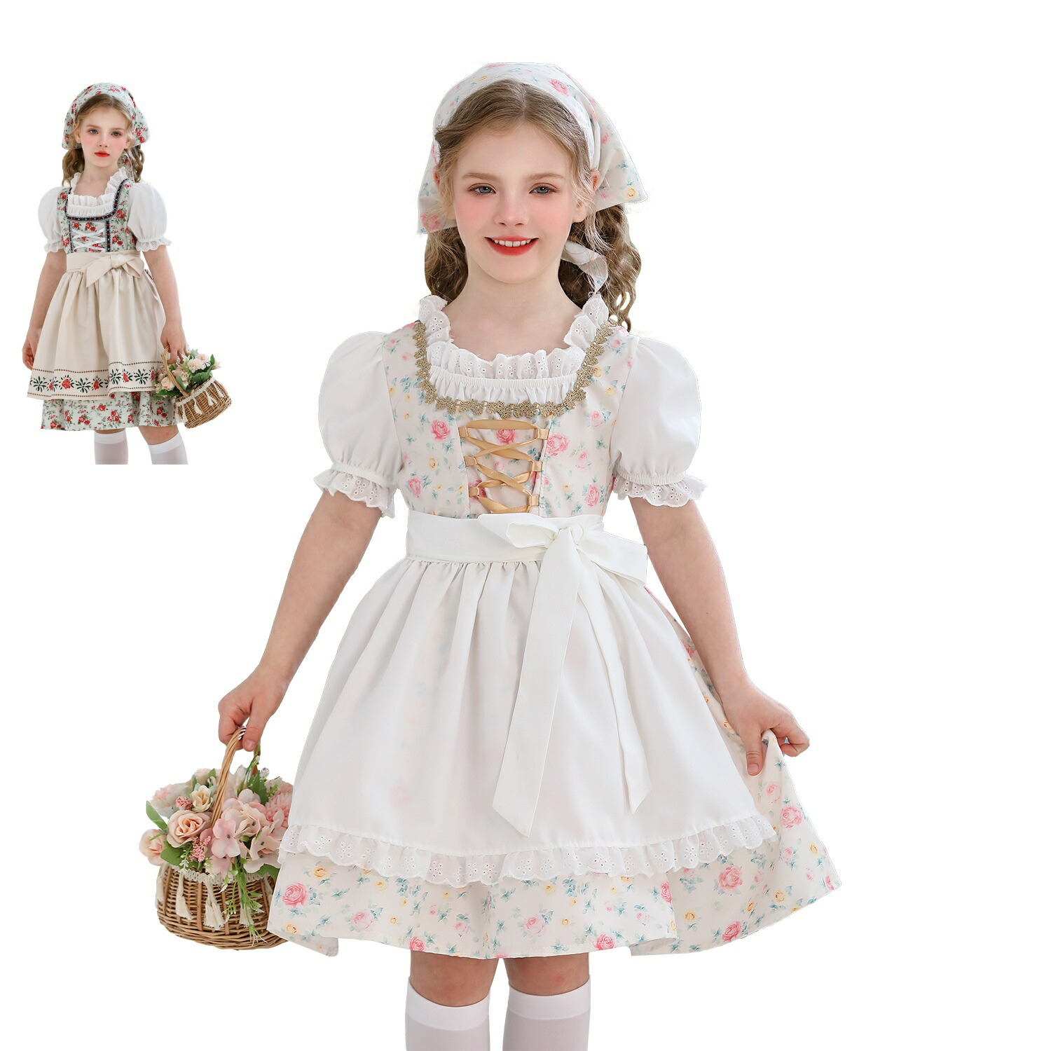 120 130 140 150 160 子どもワンピース ヴィンテージ風ロリータ ディアンドルドレス 子供用 ロリータ服 ロリータワンピース 花柄 3点セット エプロン フリル