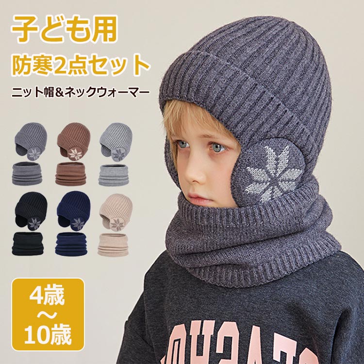 子供用 ニット帽 ネックウォーマー 2点セット 耳まで 暖かい 裏ボア あったか キッズ ニット帽子 男の子 女の子 耳当て ジュニア 冬 秋冬 保 裏起毛