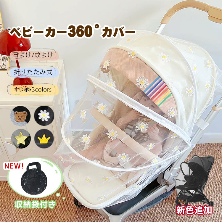 ベビーカーカバー 蚊帳 360° 日よけ 折りたたみ式 サンシェード ネット UVカット 蚊除け ゴミ除け効果 蜂よけ 風除け 虫除けネット 取り付け簡単 お出かけ 収納便利 幼児 赤ちゃんを お散歩
