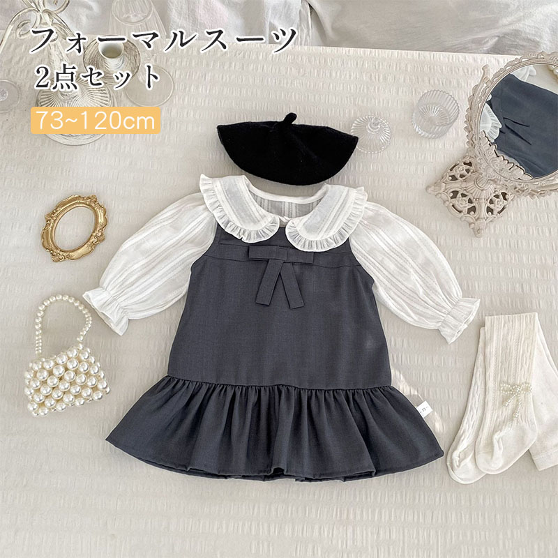 女の子 入園式 ワンピース シャツ 2点セット かわいい 入学式 卒業式 発表会 長袖 七五三 スカート ジャンパースカート ベビー服 子供服 お宮参り フォーマル ベビー 子供ドレス 赤ちゃ ドレス
