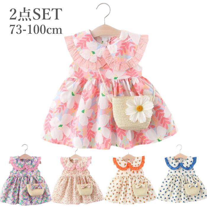 ワンピース ベビー キッズ ノースリーブ 夏用 リボン付き 花柄 かわいい