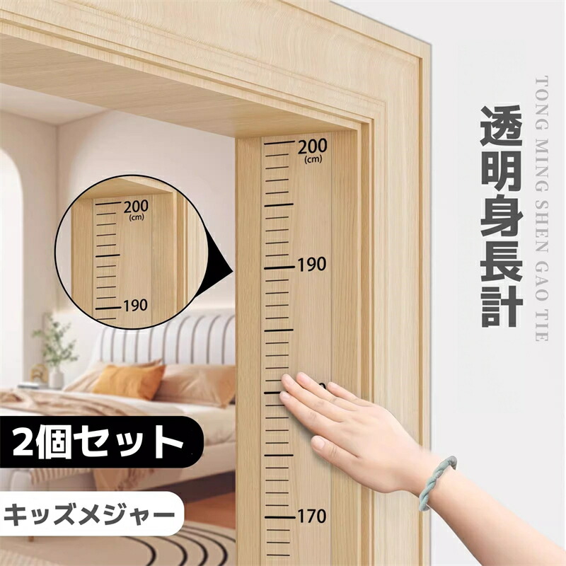 身長計 身長測定 子供用 成長記録 キッズメジャー 壁貼り 透明 耐久性 防水 可愛い 北欧 見やすい 飾り インテリア キッズ ジュニア 賃貸 身長 月齢フォト 記念 目盛り 2個入り 寝相アート