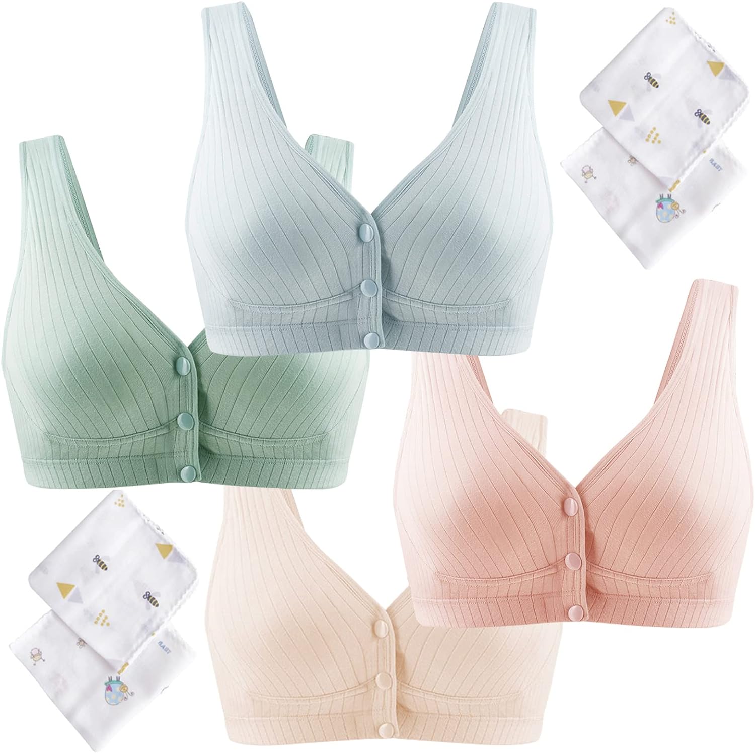 マタニティブラ 4枚セット 前開き 綿 授乳ブラ ナイトブラ ノン