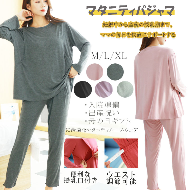 授乳服 授乳パジャマ マタニティ パジャマ 授乳口付き 上下セット 長袖 長ズボン 春 秋 モダール素材 ルームウェア 出産準備 産前産後対応 授乳口付きパジャマ プルオーバータイプ 大 ウエスト調節