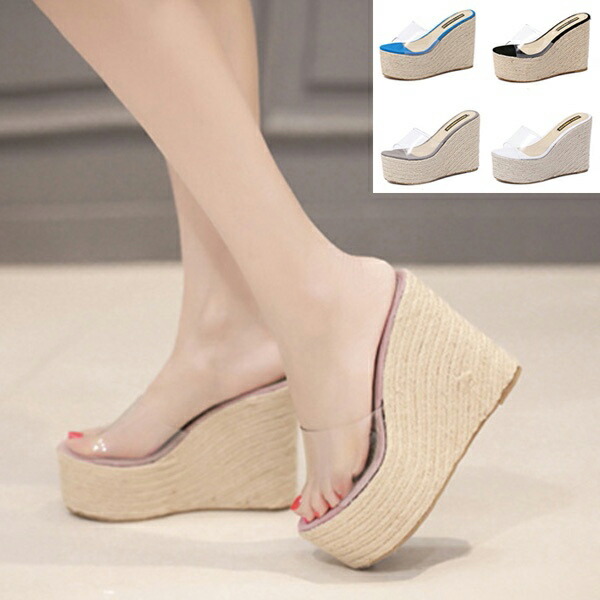 ウェッジソール サンダル 厚底 ウエッジソール 厚底サンダル レディース ヒールサンダル ミュール クリアサンダル ヒール11cm 女性 おしゃれ カジュアル シンプル サマー ブラック ホワイト 夏