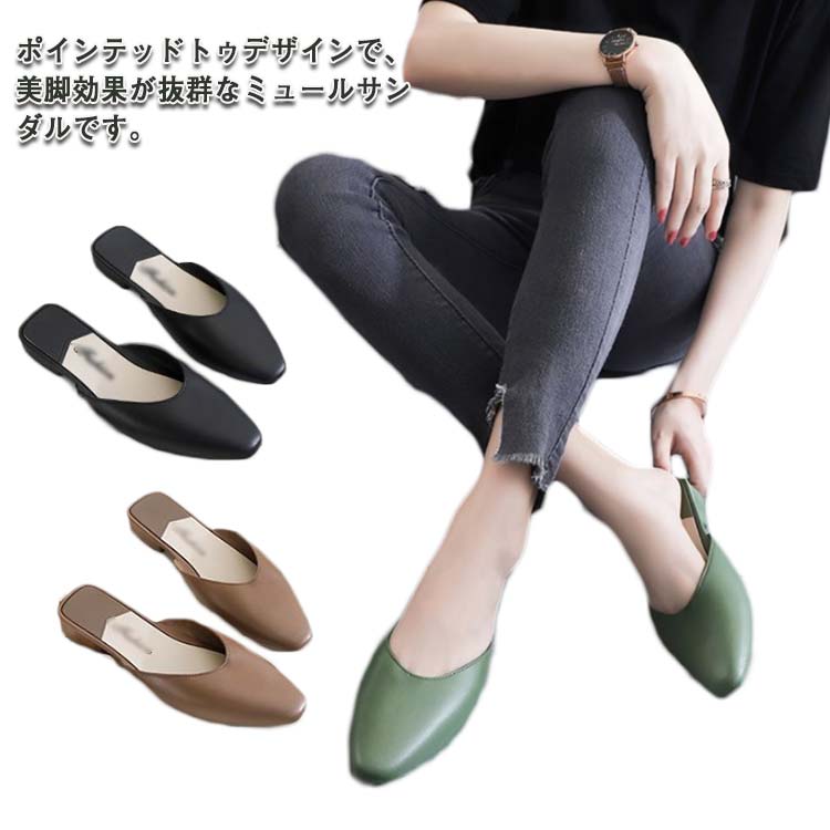 ポインテッドトゥ ミュール スリッパ レディース カジュアル フラット ミュール サンダル レディース ミュール 歩きやすい 美脚靴 サンダル レディース 靴 おしゃれ