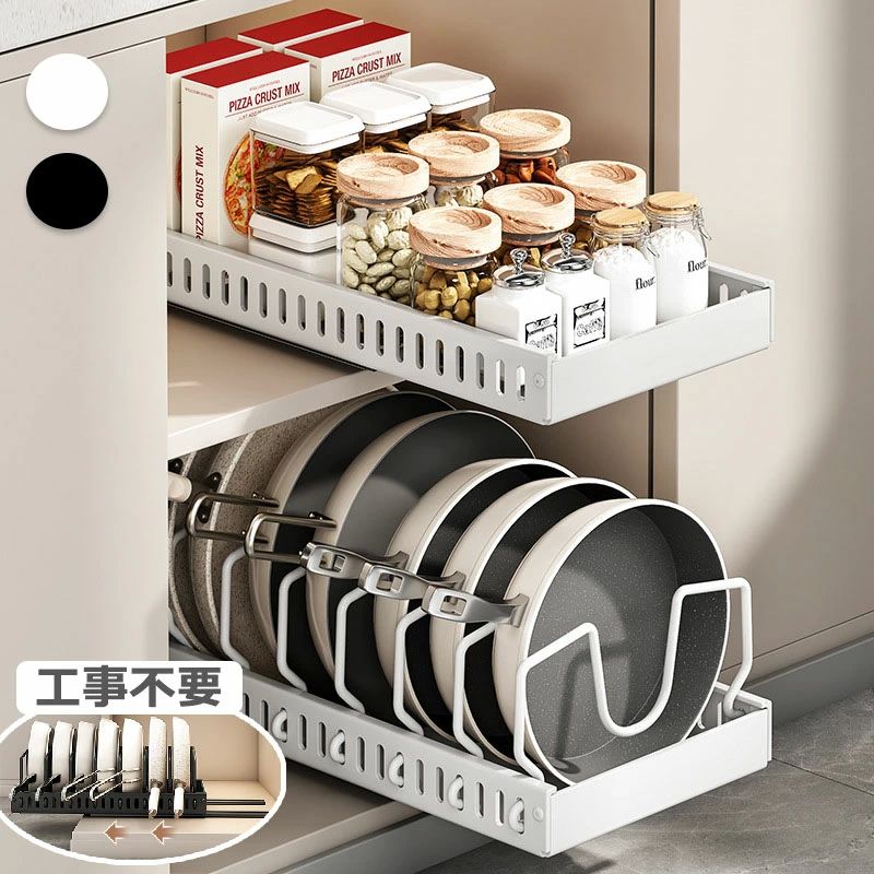 収納ラ フライパン収納 フライパンスタンド 引き出し シンク下収納 キッチン収納 フライパン 収納 伸縮 鍋蓋 調整 鍋