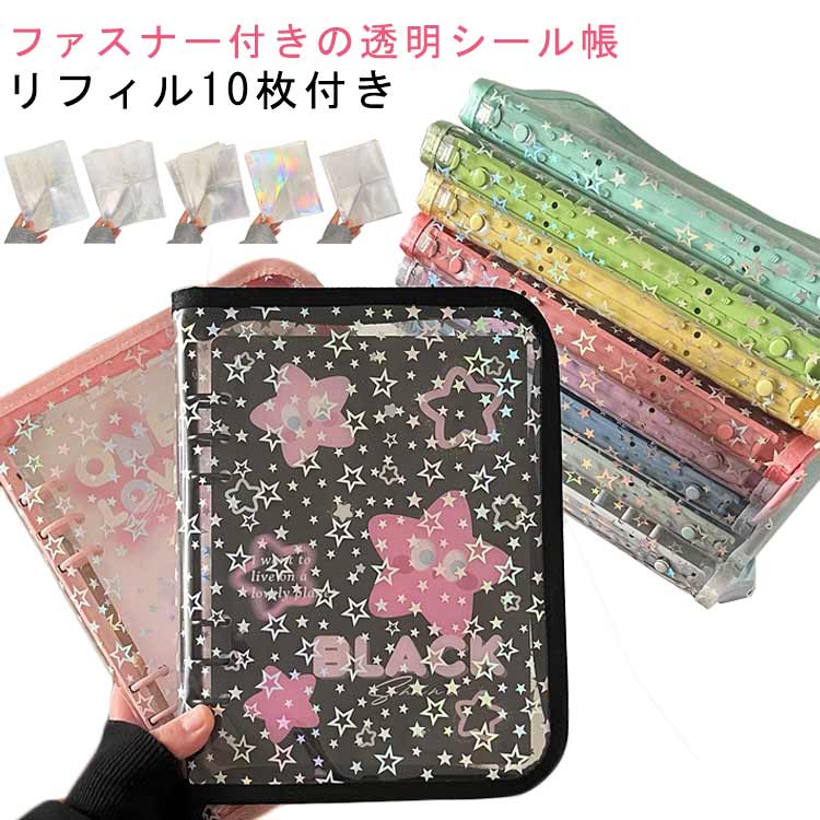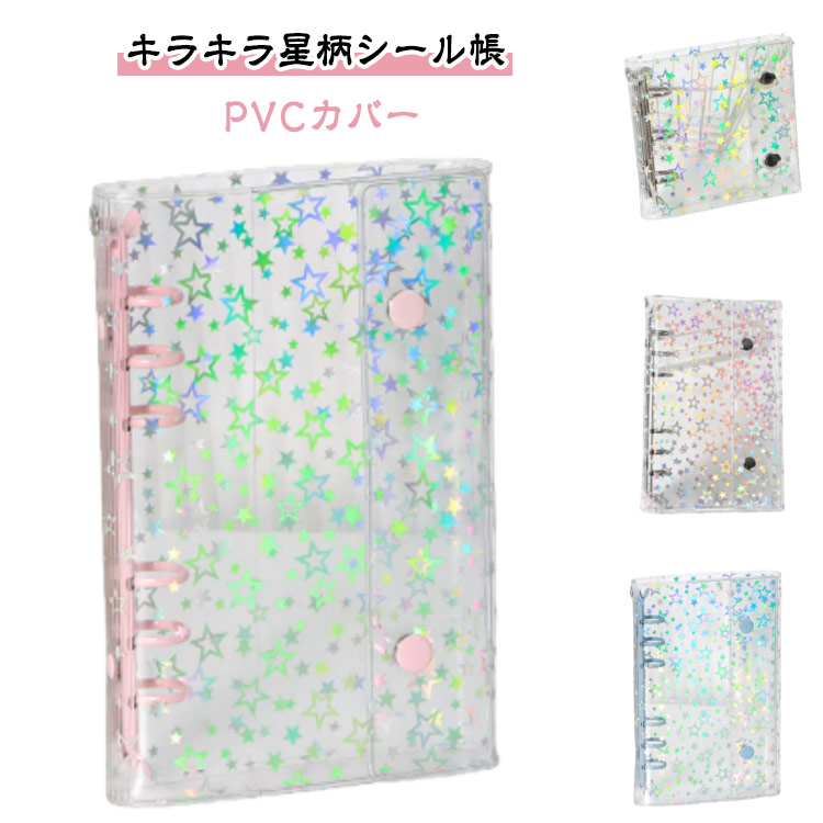 星柄 シールバインダー シール帳 M5 きらきら キラキラ 透明 バインダー クリア PVCカバー シール手帳 A6 はがせる 台紙 6穴 男の子 女の子 大人向け クリアバインダー シール収納 A7