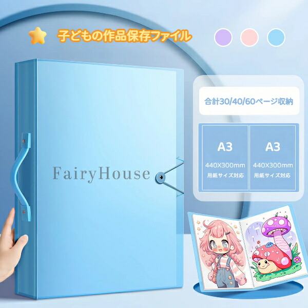 A3 8Kサイズ アートポートフォリオ 30 40 60ポケット選べる ハンドル付き|子どもの作品収納 卒園 入学準備 絵の保存ファイル 賞状整理