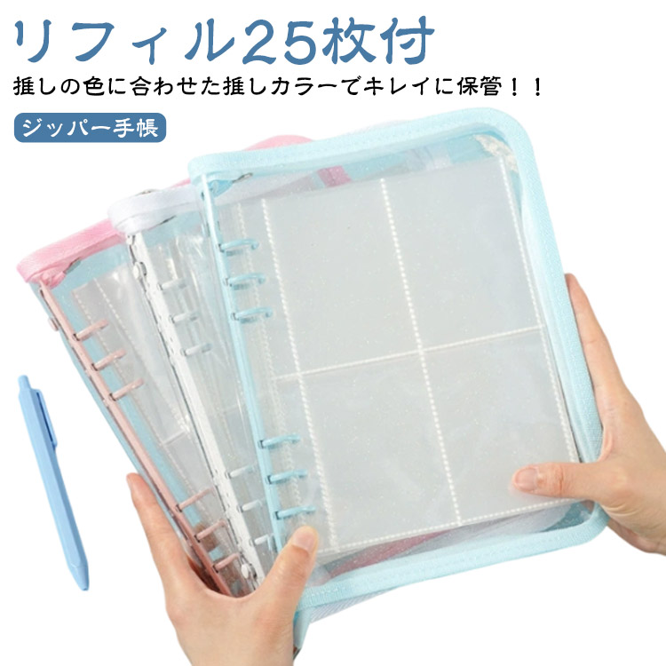 SNSで話題 ジッパー手帳 リフィル25枚付属 透明 クリア バインダー 6穴 A5 トレカケース コレクトブック 女の子 手帳 コラージュノート コンパクト カスタマイズ 手帳型 シールバインダー