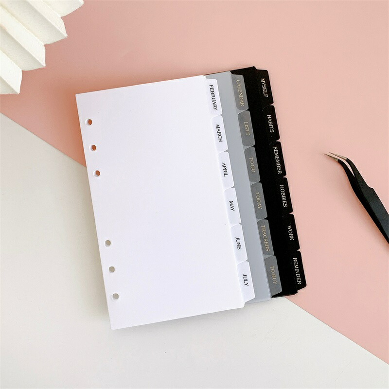 仕切カード A5 A6 インデックスカード ラベル付き PP製 ファイル インデックスシート 黒 仕切りa5 防水性と耐久性 手帳 ジャーナル用 学習 オフィス用品 ノート