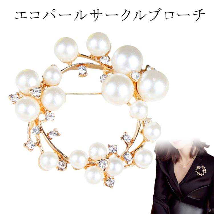 ブローチ アクセサリー パールビジュー ゴールド 結婚式 パーティー お呼ばれ 上品 大人 サークルデザイン レディース エコパール セレモニー 通勤 合金 ママスーツ 卒園式 卒業式 入学式 入卒