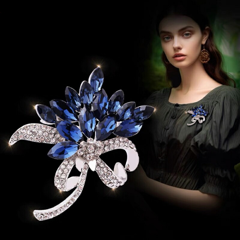 フラワーブローチ キラキラ エレガント高級感を演出し、フォーマルなシーンだけでなくパーティーにもおすすめブローチ♪