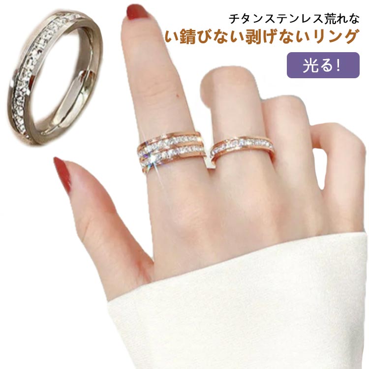 2タイプあり リング指輪 ステンレスリング アレルギーフリー 錆びない ペアリング きらきら プレゼント 金アレ対応