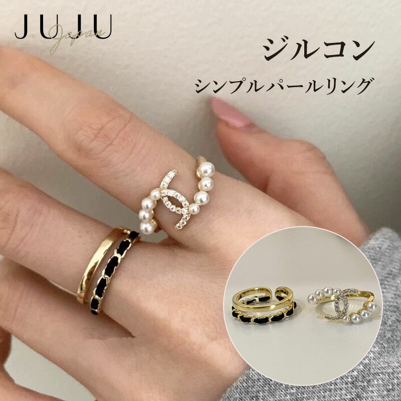 リング 指輪 レディース パールリング ジルコン ジルコニア ダイヤ デザインリング Cモチーフ ダブルリング クロスリング 大人 おしゃれ 可愛い 高見え ダブル 重ねつけ プレ 2連リング