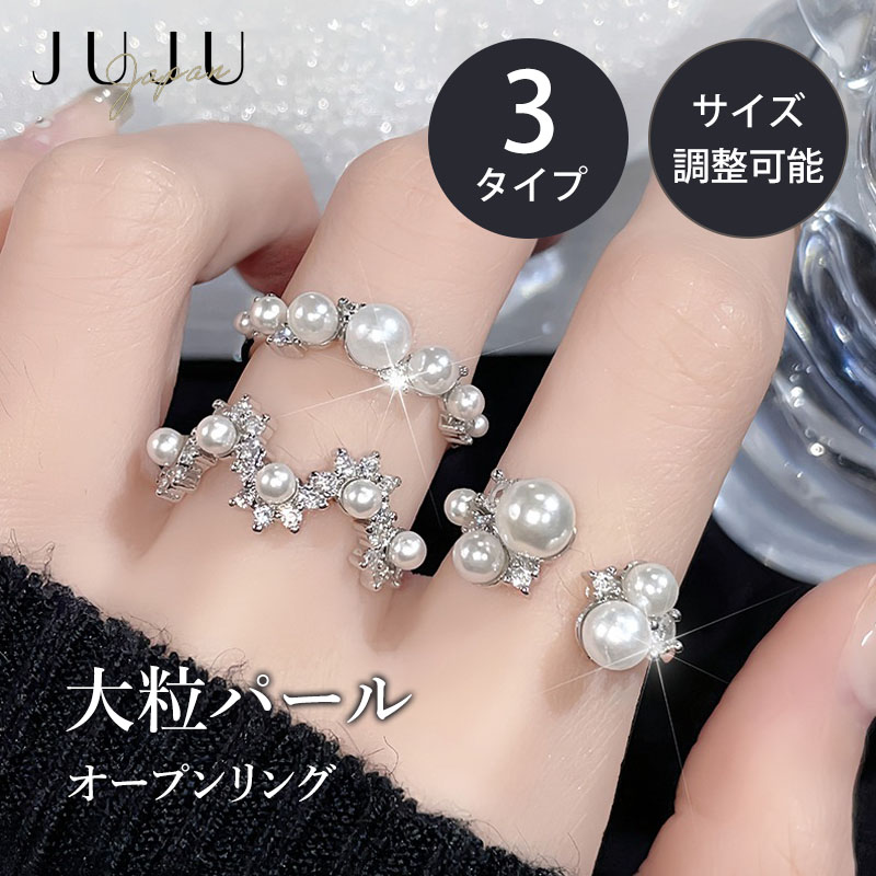 パール リング フリーサイズ オープンリング 指輪 個性的 上品 可愛い きれいめ パーティー ファッションリング 大粒 真珠リング ボリュームリング サイズ調整可能 大人 おしゃ レディース
