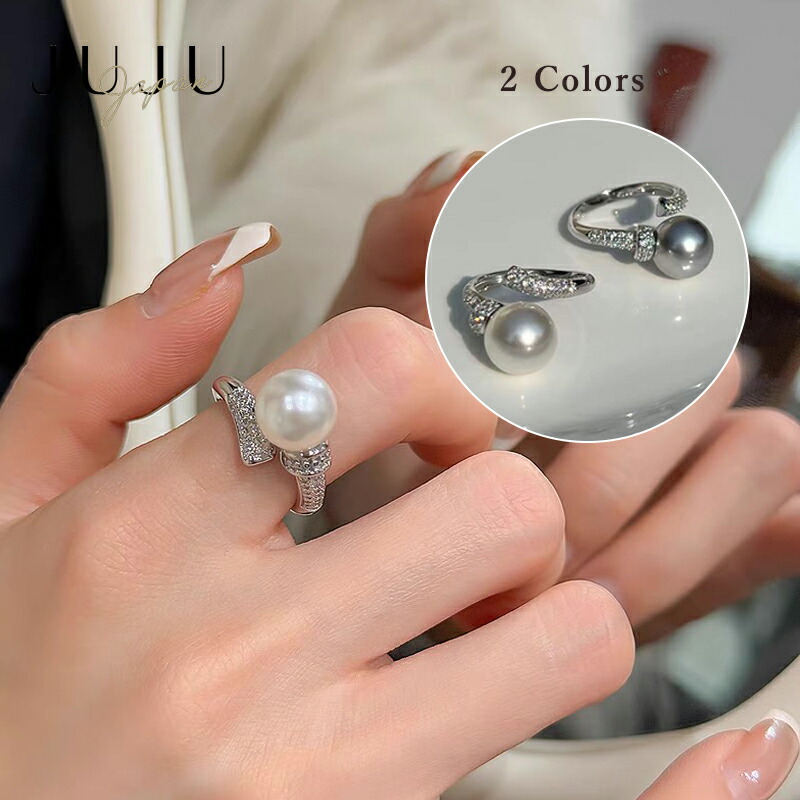 リング 指輪 パール 一粒パール オープンリング ダイヤ フリーサイズ サイズ調整可能 上品 可愛い きれいめ ファッションリング レディース 大人 高級 ホワイト グレー おしゃれ
