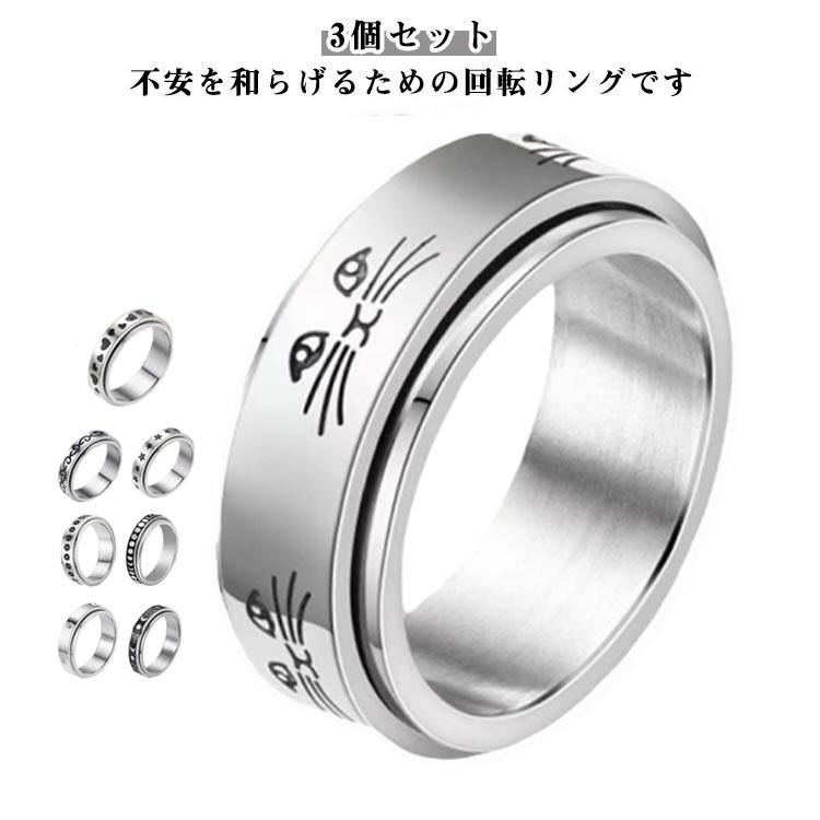 緩和 不安 スピナーリング ストレス解消 猫 6~12号 癖対策 不安を和らげるリング 月 レディース メンズ リラックス ステンレス 指輪 星 不安リング 回転リング フィジェッ 太陽