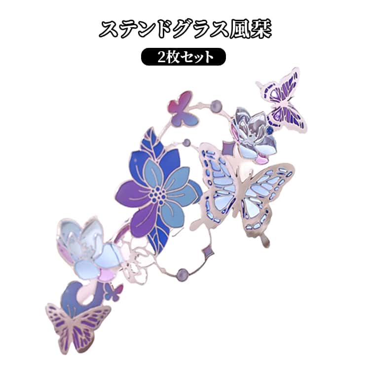 2枚セット しおり 栞 ブックマーク 古典的 レトロ ブックマーカー ステンドグラス風 金属製 透ける 綺麗 蝶 卒業 祝い 贈り物 ギフト 四六判 文庫本 昭和レトロ 上品 高級感 おしゃれ 文房具