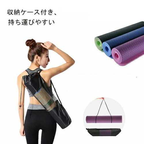 ヨガマット 2トーン8色 6mm厚 高級 TPE 素材 トレーニングマット エクササイズマット ゴムバンド 無臭 無毒 183cm、*61cm、*6mm 収納バッグ付き