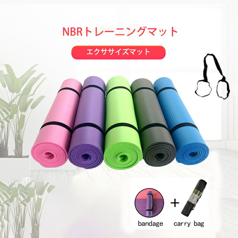 NBRヨガマット トレーニングマット エクササイズマット 極厚 収納袋付ヨガマット キャリーストラップ付
