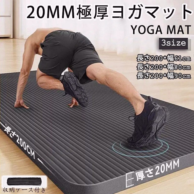 ヨガマット 極厚 20mm 痛くない トレーニングマット アイコン 幅広61~90cm 長さ200cm 特大 高密度 筋トレマット 収納バッグ付き ギフト 初心者 ピラティス