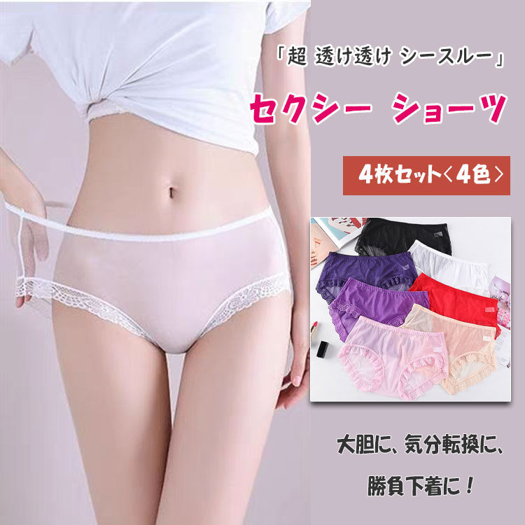 シースルー ショーツ レディース 4枚セット セクシーショーツ 下着 ランジェリー セクシーランジェリー パンティ 透け透け 柔らか素材 優しい穿き心地 通気性 まとめ買 優しい肌ざわり