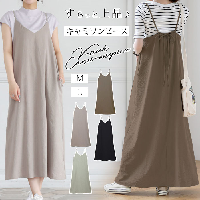 ショート/ロング キャミワンピ レディース ネック きれいめ オフィス 仕事 ゆったり 着心地の良さが魅力のキャミソールワンピース バックリボンキャミワンピース 秋ワンピ 春夏秋冬