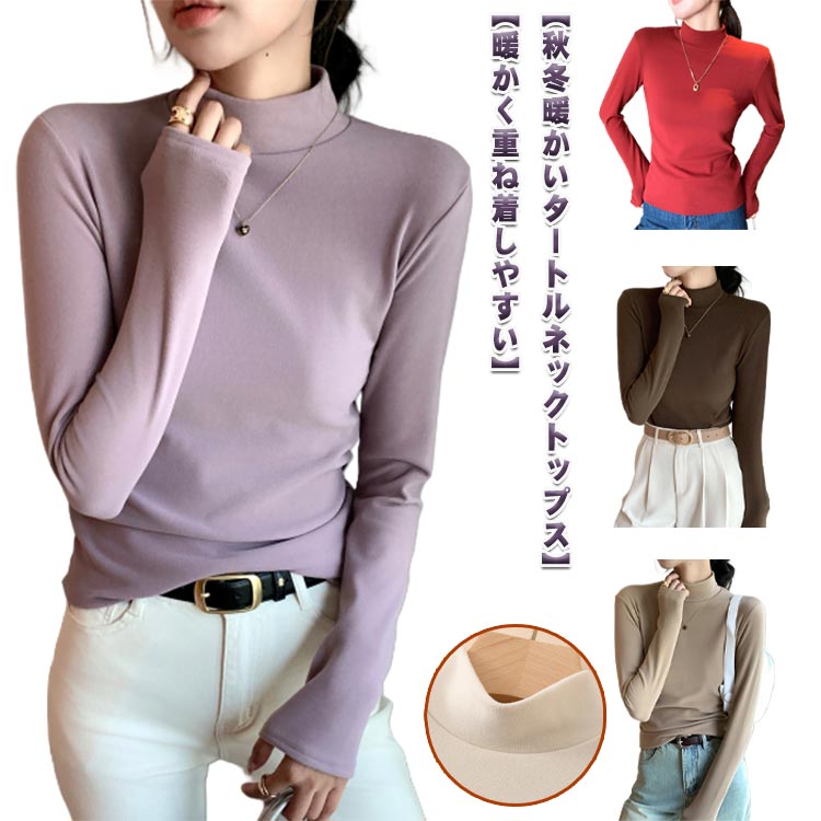 レディース 防寒 裏起毛 微起毛 シャツ 長袖 ハイネック トップス 防寒インナー 重ね着風 カットソー レイヤード インナー タートルネック シャツ 春秋冬