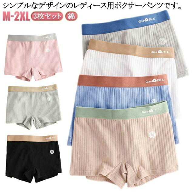ショーツ レディース ボックスパンツ ボクサーパンツ パンツ 3枚組 綿 コットン ボーイレッグ 下着 インナー ボックスショーツ 女性下着 男性下着 男女兼用 無地 リブ 肌 シンプル