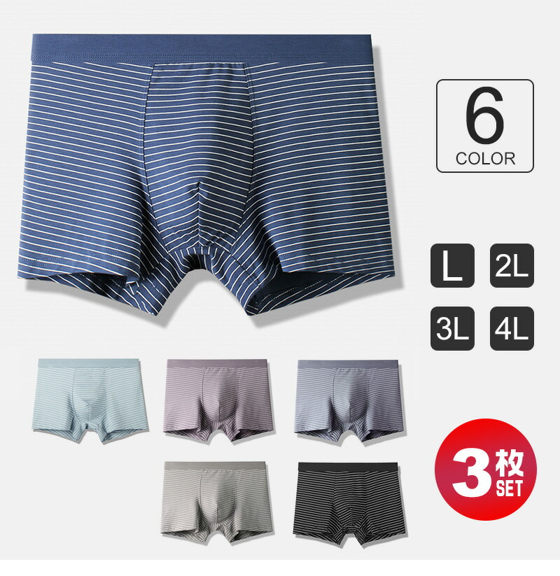 ボクサーパンツ メンズ アンダーウェア 綿 3枚セット ボクサー パンツ ボーダー柄 インナー L-4L 下着 コットン おしゃれ かっこいい 吸汗性 男性 誕生日 プレゼント 大人