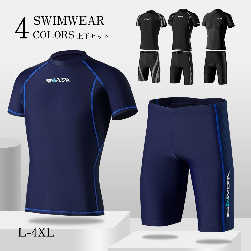 水着 メンズ スイムウェア 耐塩素 ラッシュガード 上下セット セパレート フィットネス水着 競泳 半袖 男子 学生 スイミングパンツ