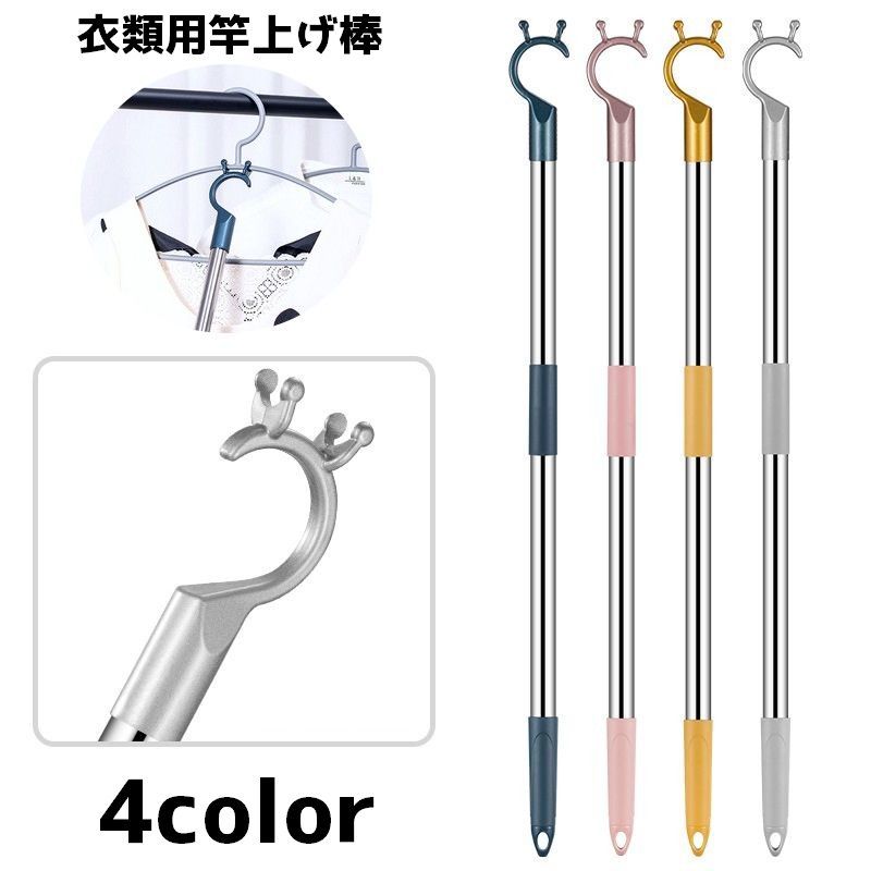 竿上げ棒 竿上げ 竿あげ 物干し竿 ものほし竿 調節可能 クローゼットエクステンダポール 伸縮式 コートハンガースーツハンガー 洗濯 延長クローゼットフックポール 上の棚 室内 室外 引 天井