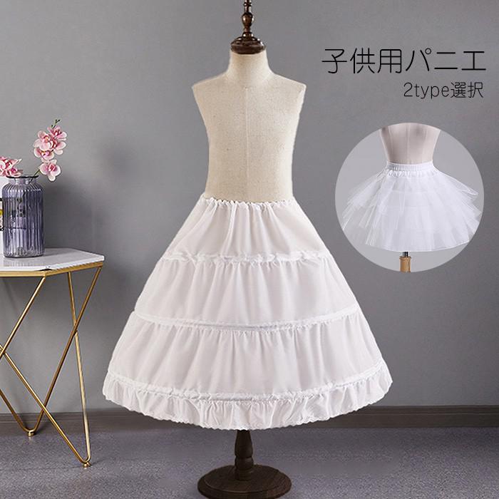 パニエ 子供用 ドレス用 ホワイト 白 ワイヤー入り 骨あり ワイヤー無し Aライン ロリータパニエ キッズ ロング丈 演奏会 発表会 文化祭 学園祭 ステージ用 コスプレ 仮装 可愛い ハロウィン