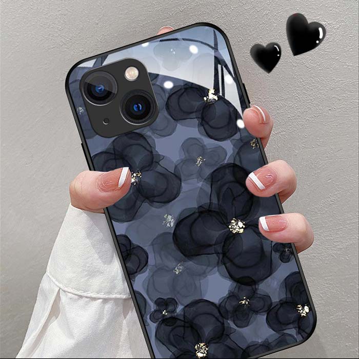 iPhone17ケース 花柄 和柄 墨絵 アイフォンケース iPhone16Proケース iPhone15ケース フラワー 花 ガラス iphoneケース スマホケース iPhone 17 16 韓国