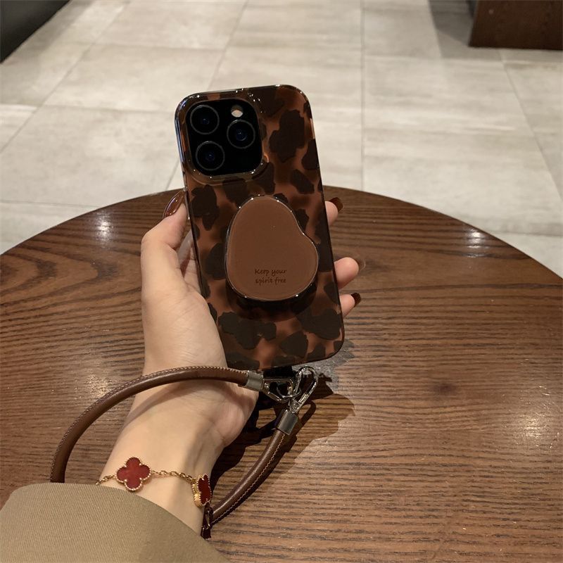 ストラップ付き iPhone17Proケース グリップ付き iPhoneケース アイフォンケース iPhone雑貨 スマホケース べっ甲柄 レオパード おしゃれ 韓国 iPhone17ケース ヒョウ柄