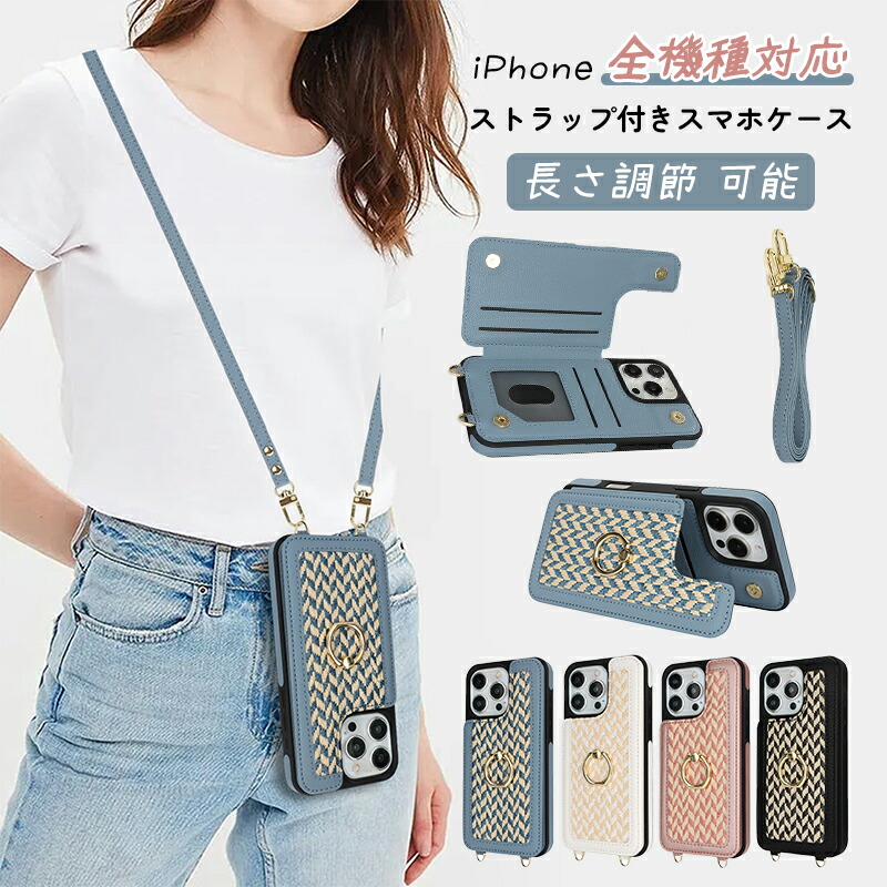 【ソフト】 スマホショルダー 薄型 リング 背面収納 16 15 14 13 12 11 携帯ケース ショルダー 背面手帳型 リング付き 肩掛け 韓国